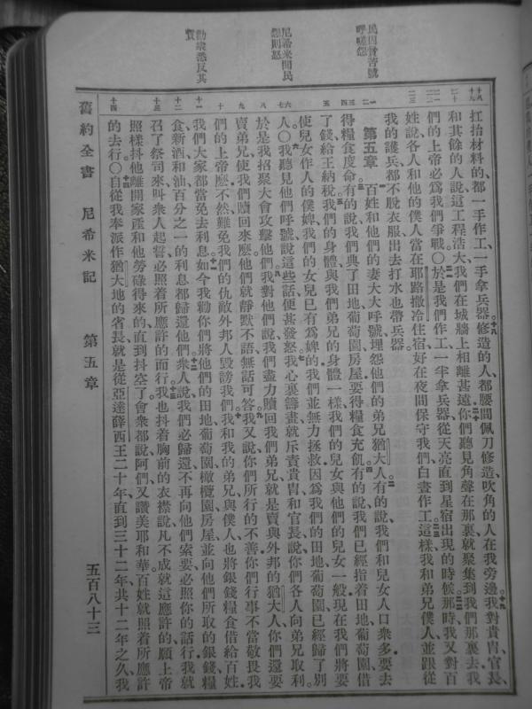 1919年官話和合本 尼希米記 4 章 18 節到 5 章 14 節
