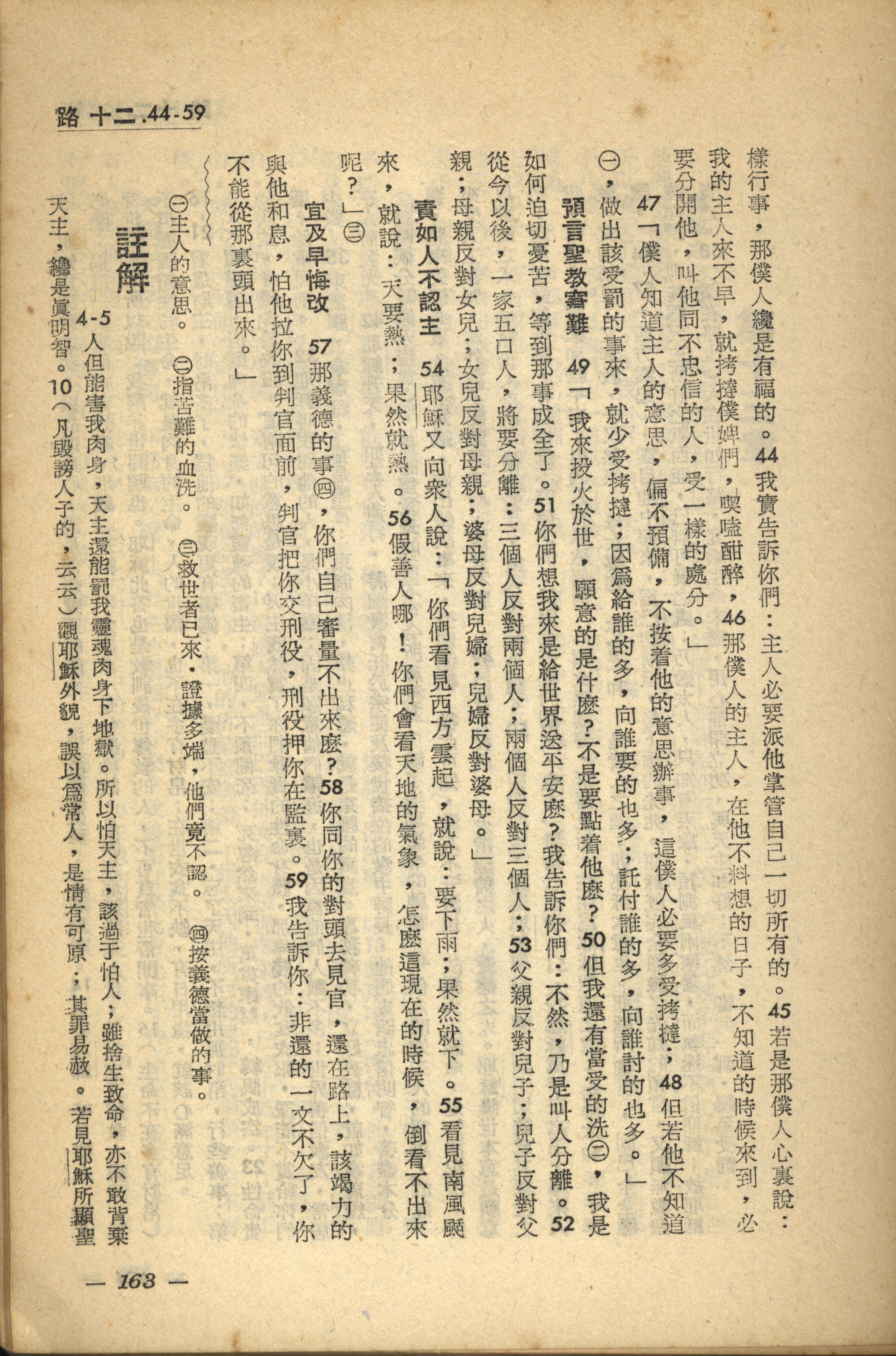 1956年新經全集 路加福音 12 章 44 節到 12 章 59 節