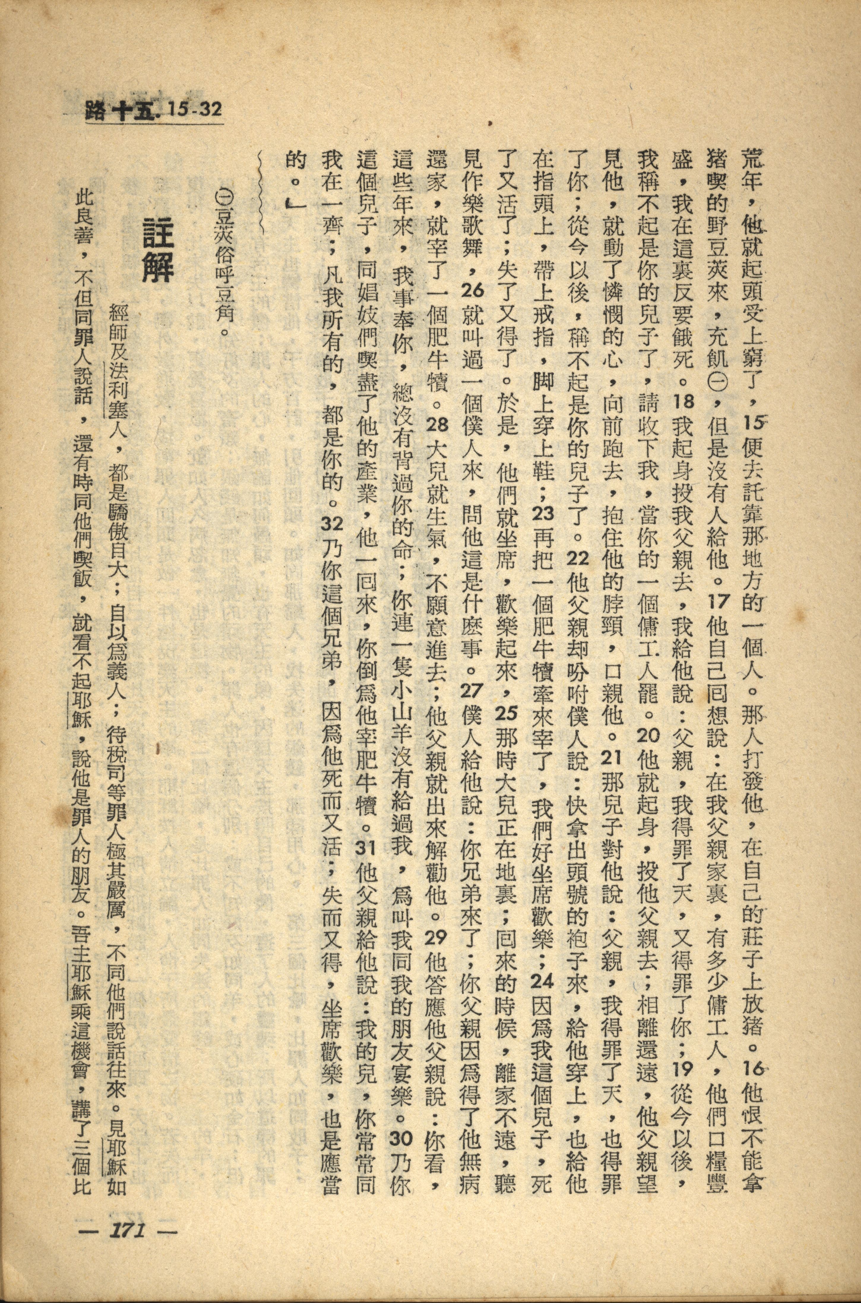 1956年新經全集 路加福音 15 章 15 節到 15 章 32 節