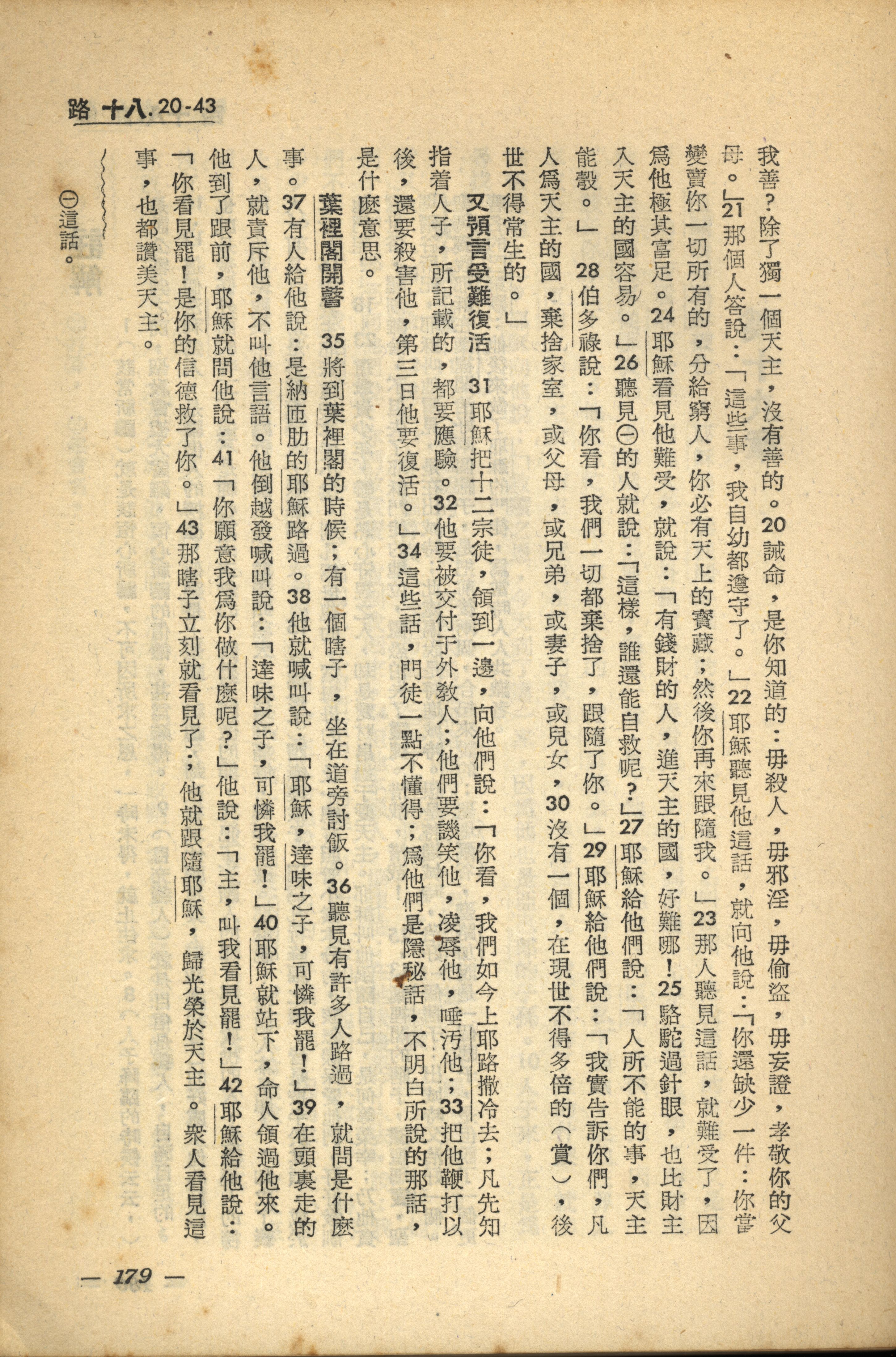 1956年新經全集 路加福音 18 章 20 節到 18 章 43 節