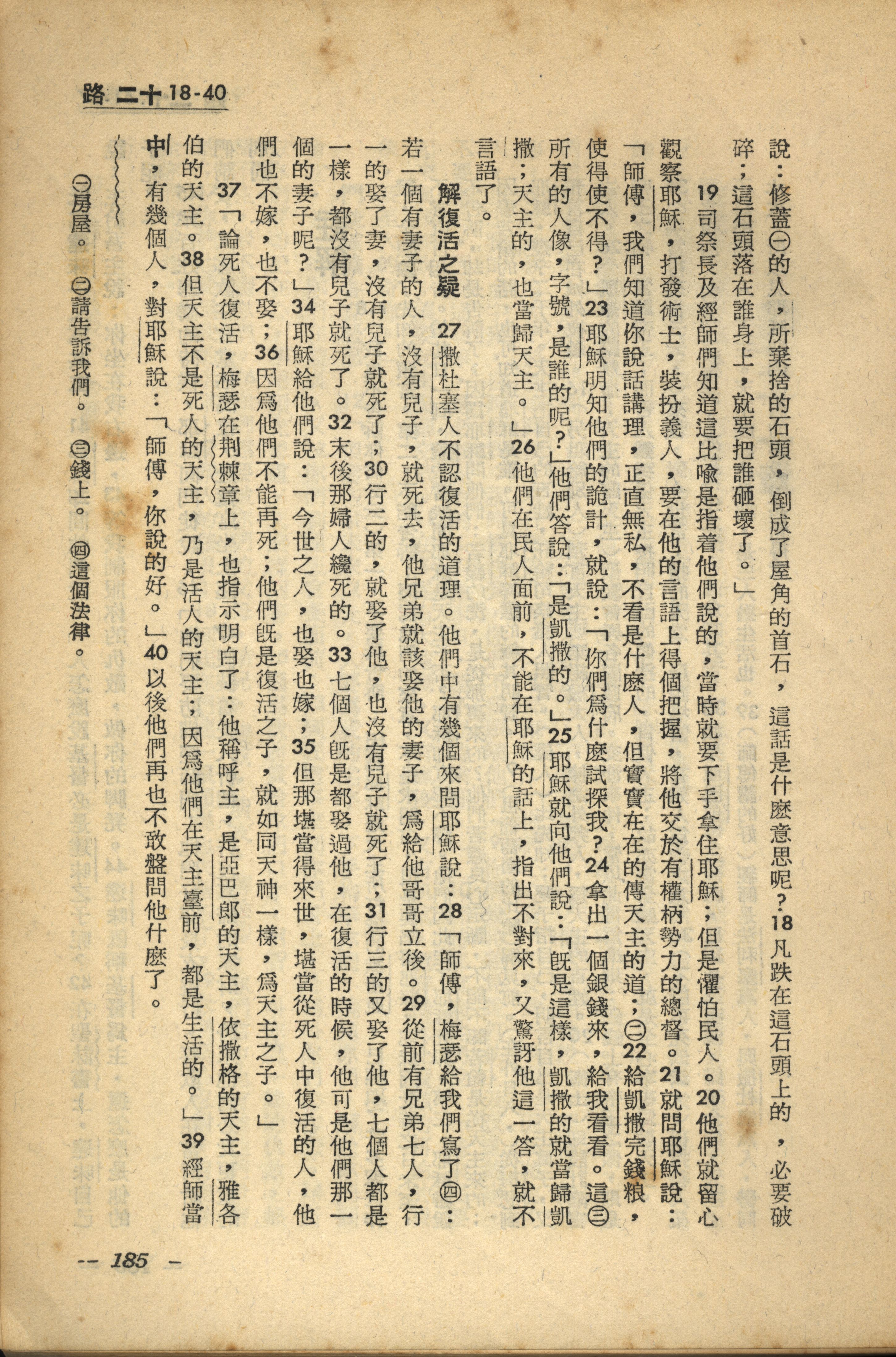 1956年新經全集 路加福音 20 章 18 節到 20 章 40 節