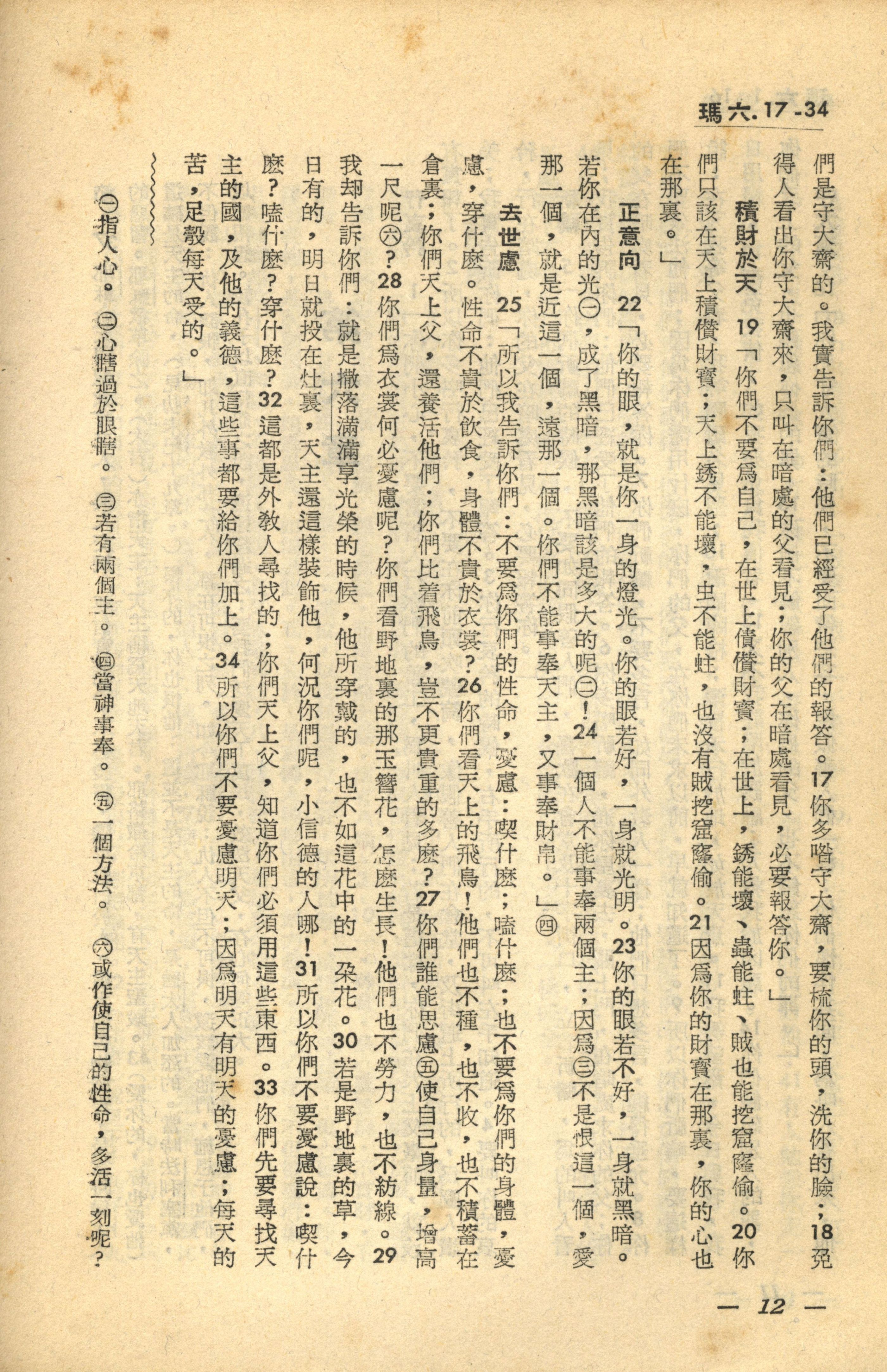 1956年新經全集 馬太福音 6 章 17 節到 6 章 34 節