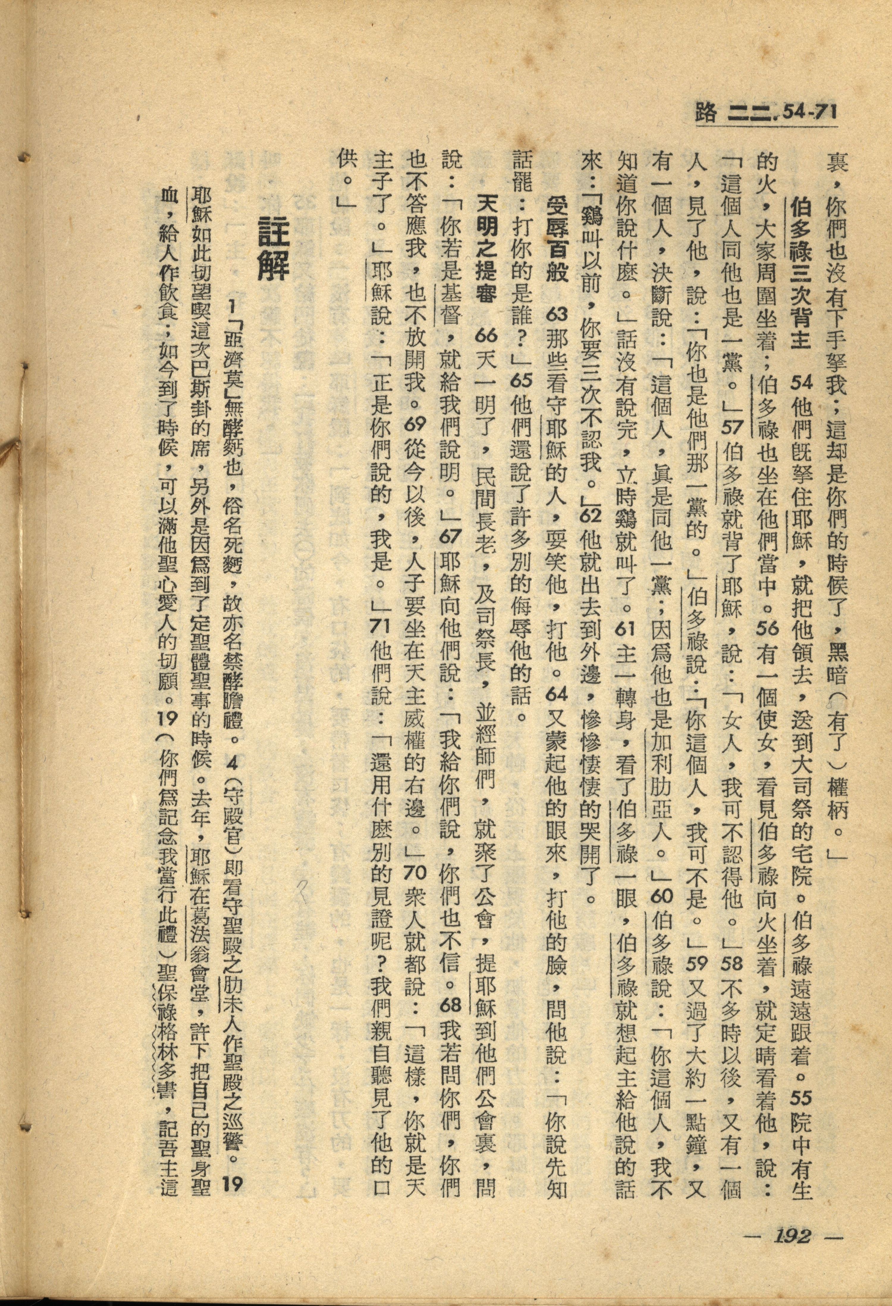 1956年新經全集 路加福音 22 章 54 節到 22 章 71 節