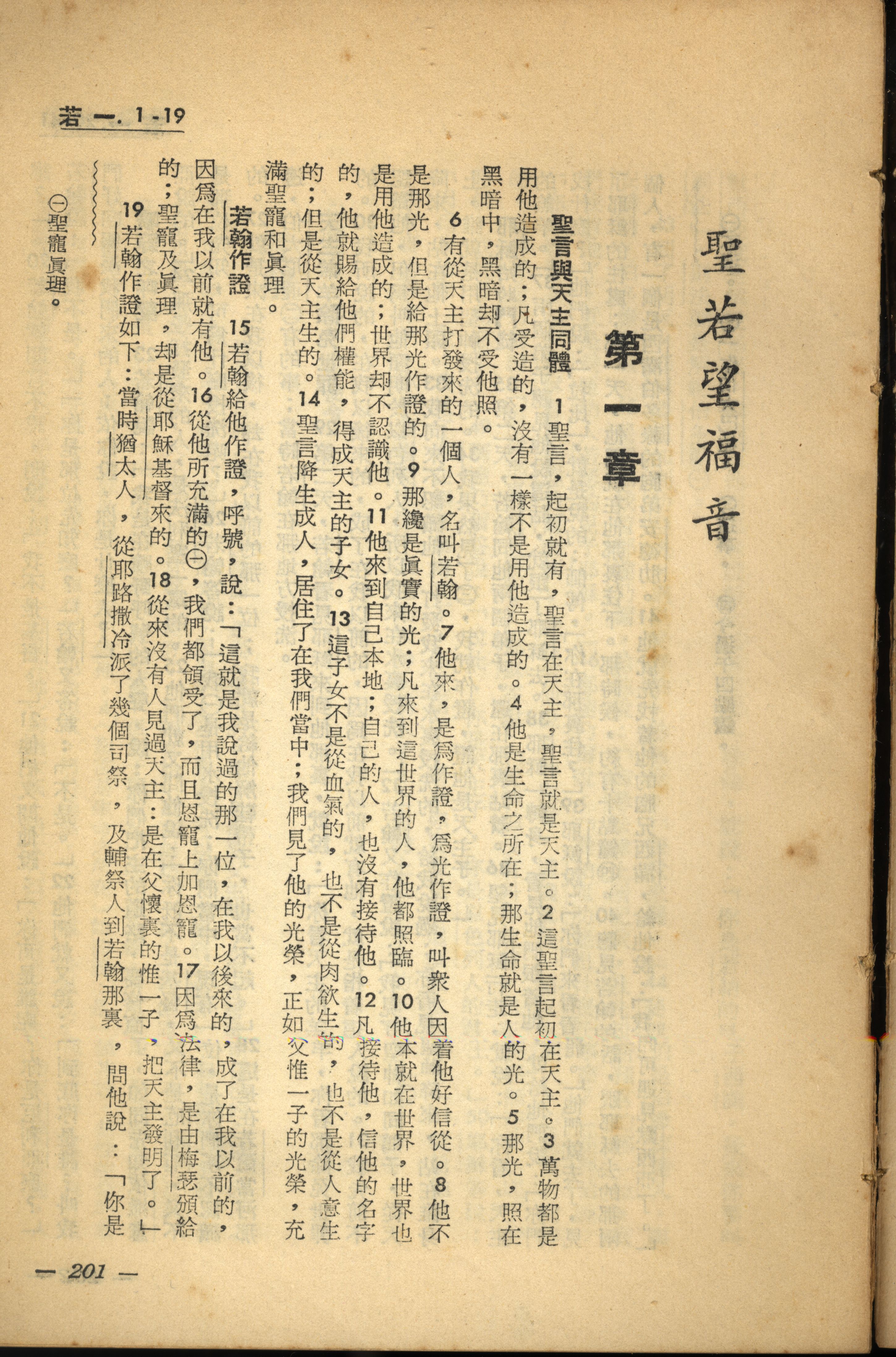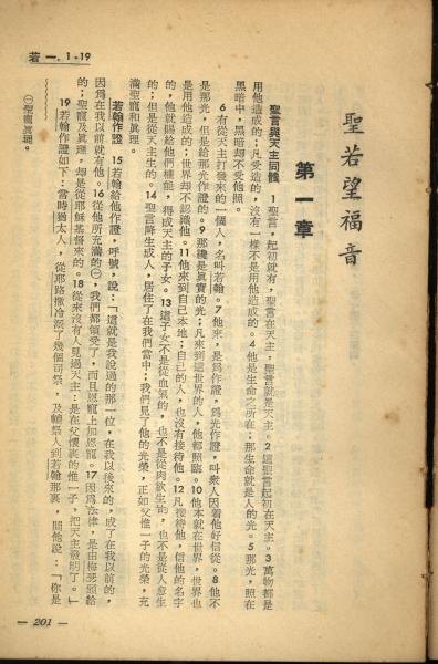 1956年新經全集 約翰福音 1 章 1 節到 1 章 19 節