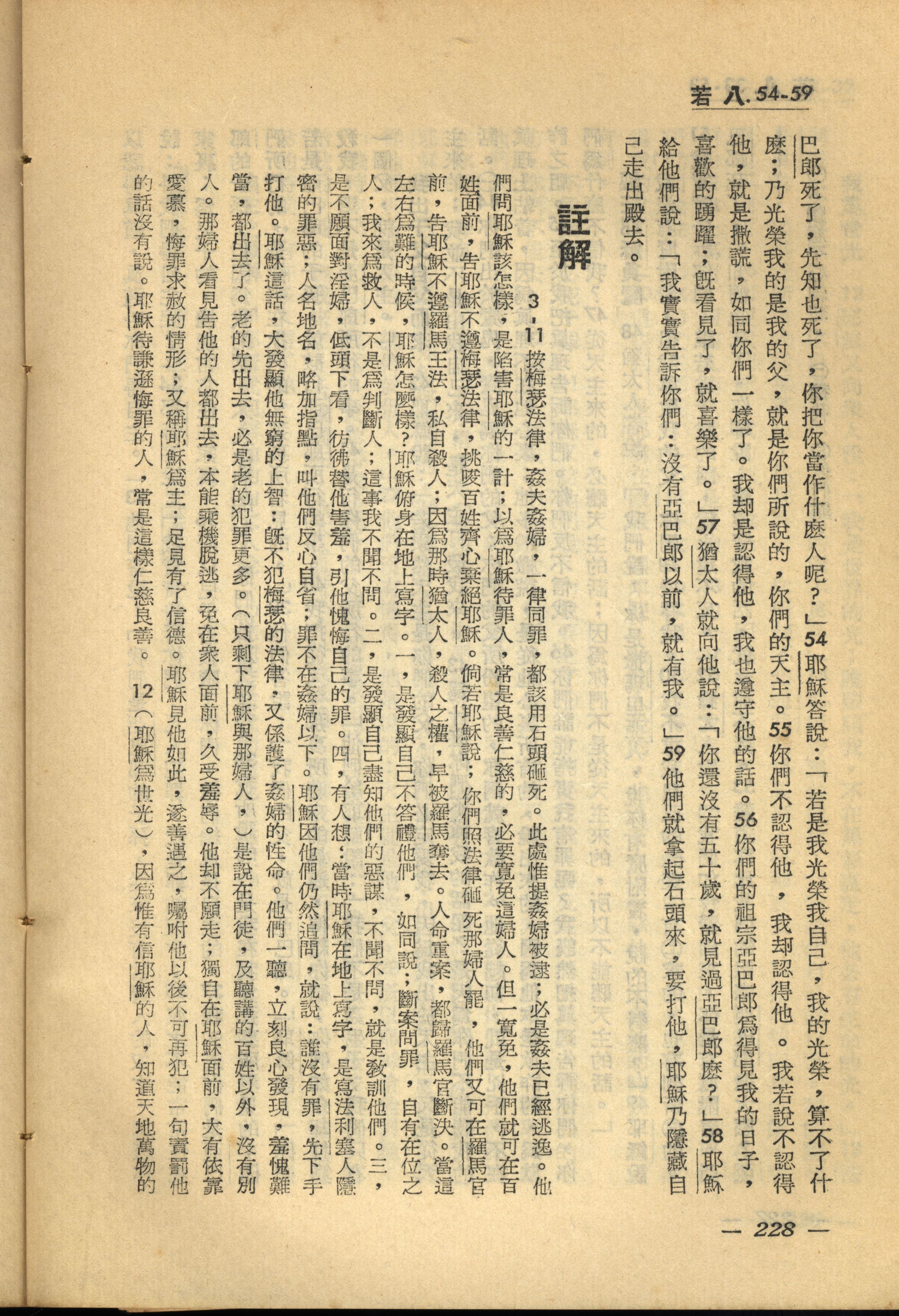 1956年新經全集 約翰福音 8 章 54 節到 8 章 59 節