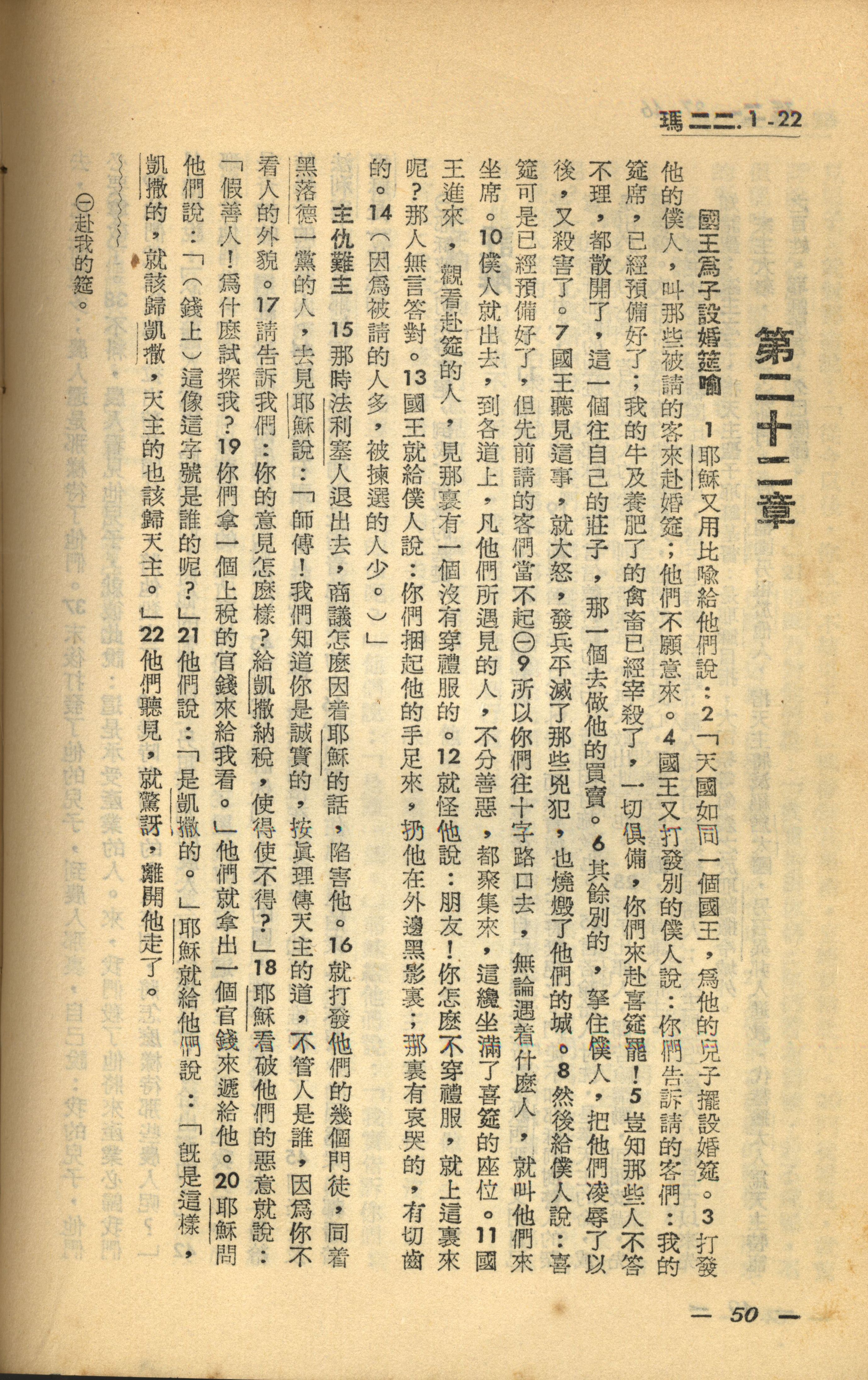 1956年新經全集 馬太福音 22 章 1 節到 22 章 22 節