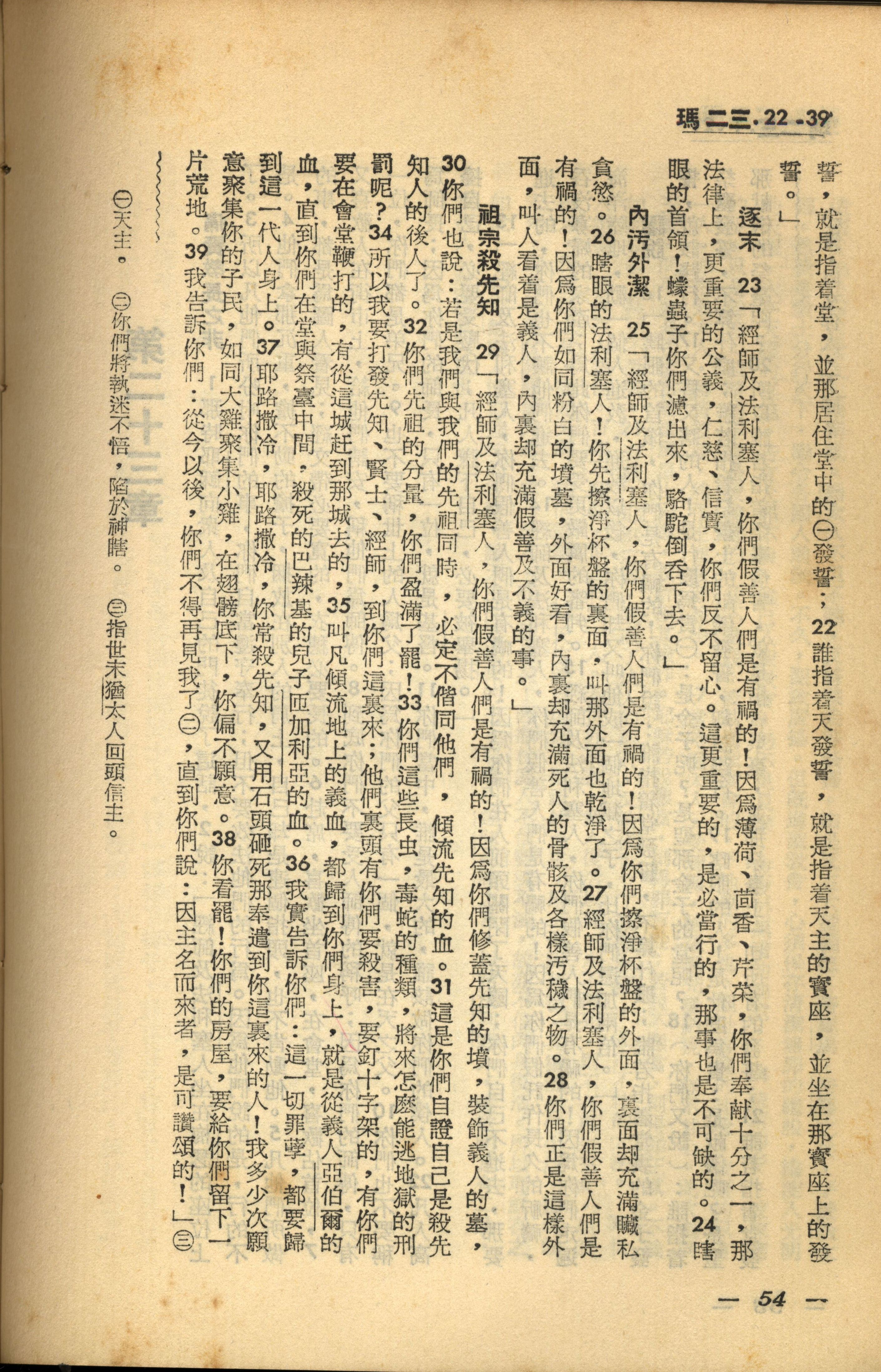 1956年新經全集 馬太福音 23 章 22 節到 23 章 39 節