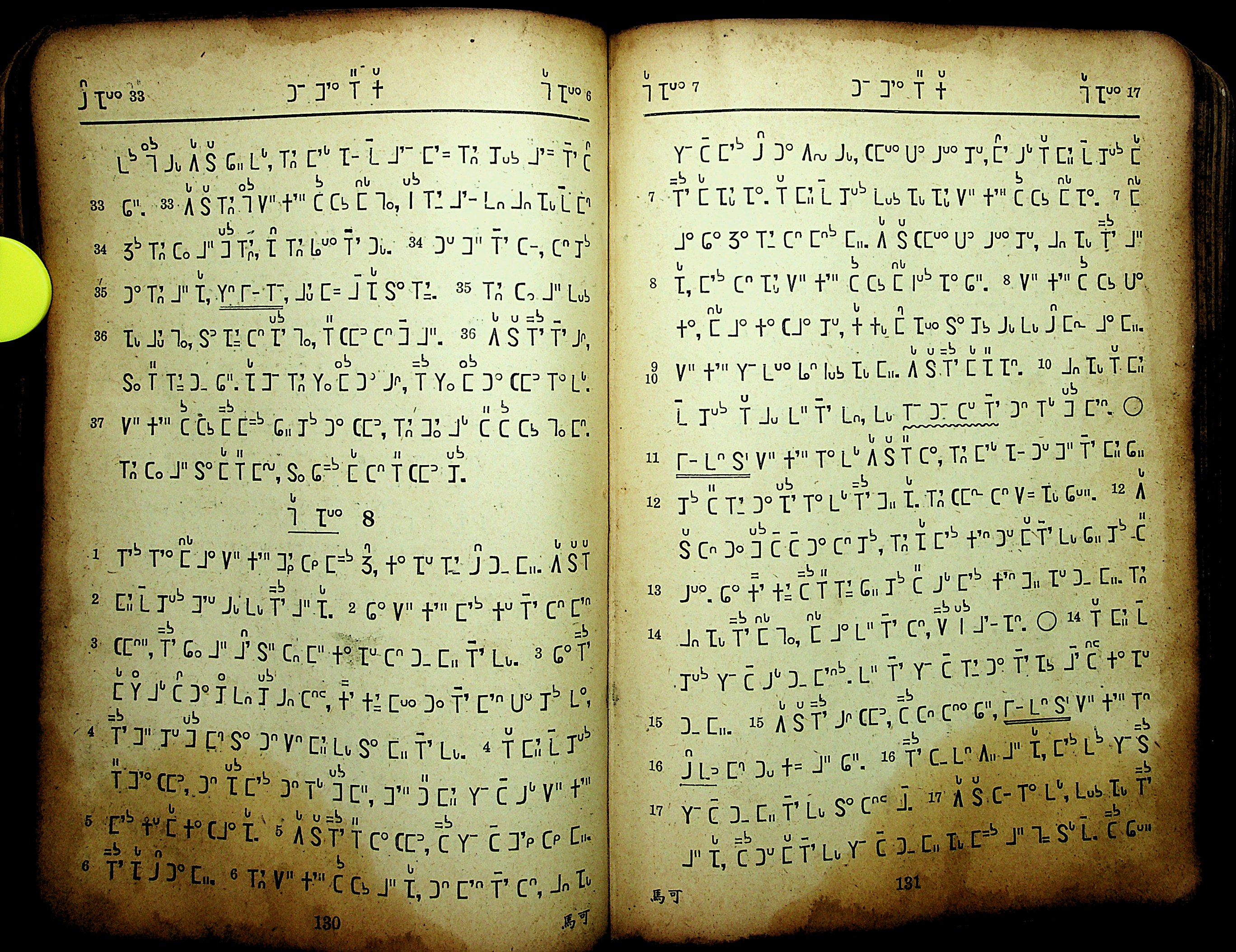 1948年黑彝新約全書 馬可福音 7 章 33 節到 8 章 17 節