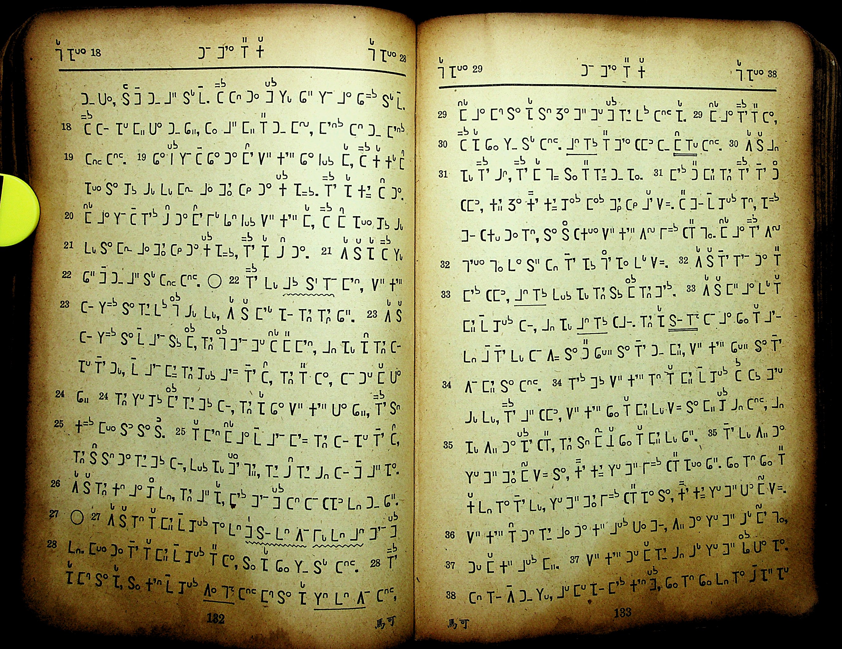 1948年黑彝新約全書 馬可福音 8 章 18 節到 8 章 38 節