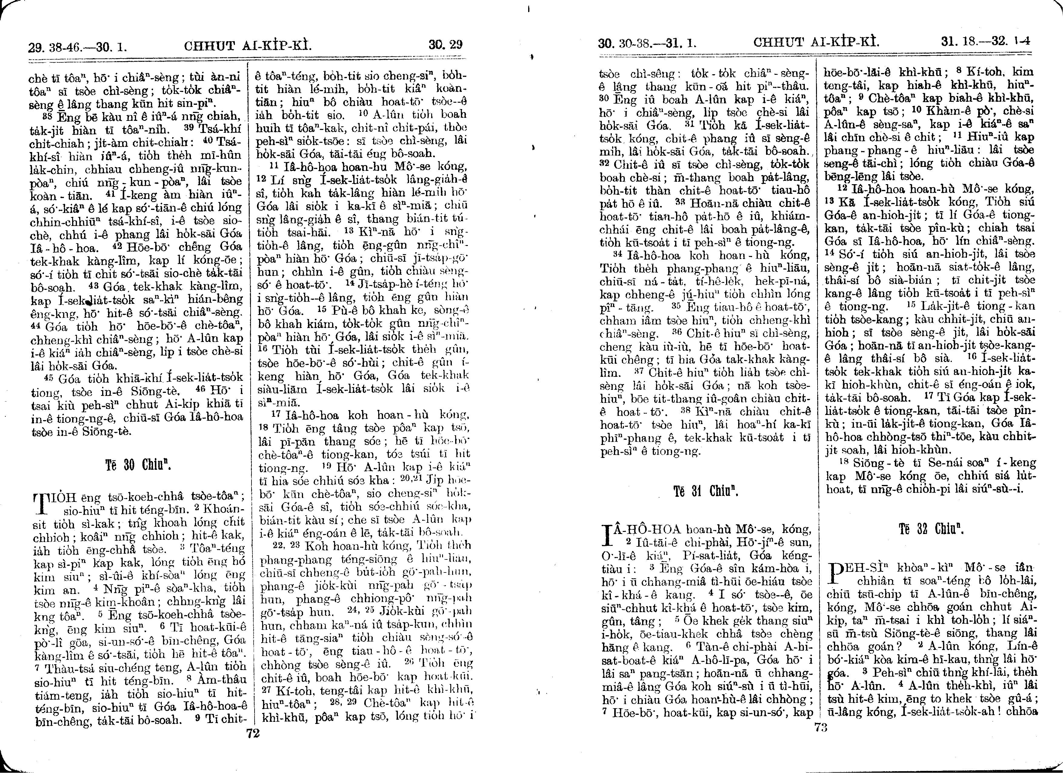 1930年馬雅各舊約全書+巴克禮新約全書 出埃及記 29 章 38 節到 32 章 4 節