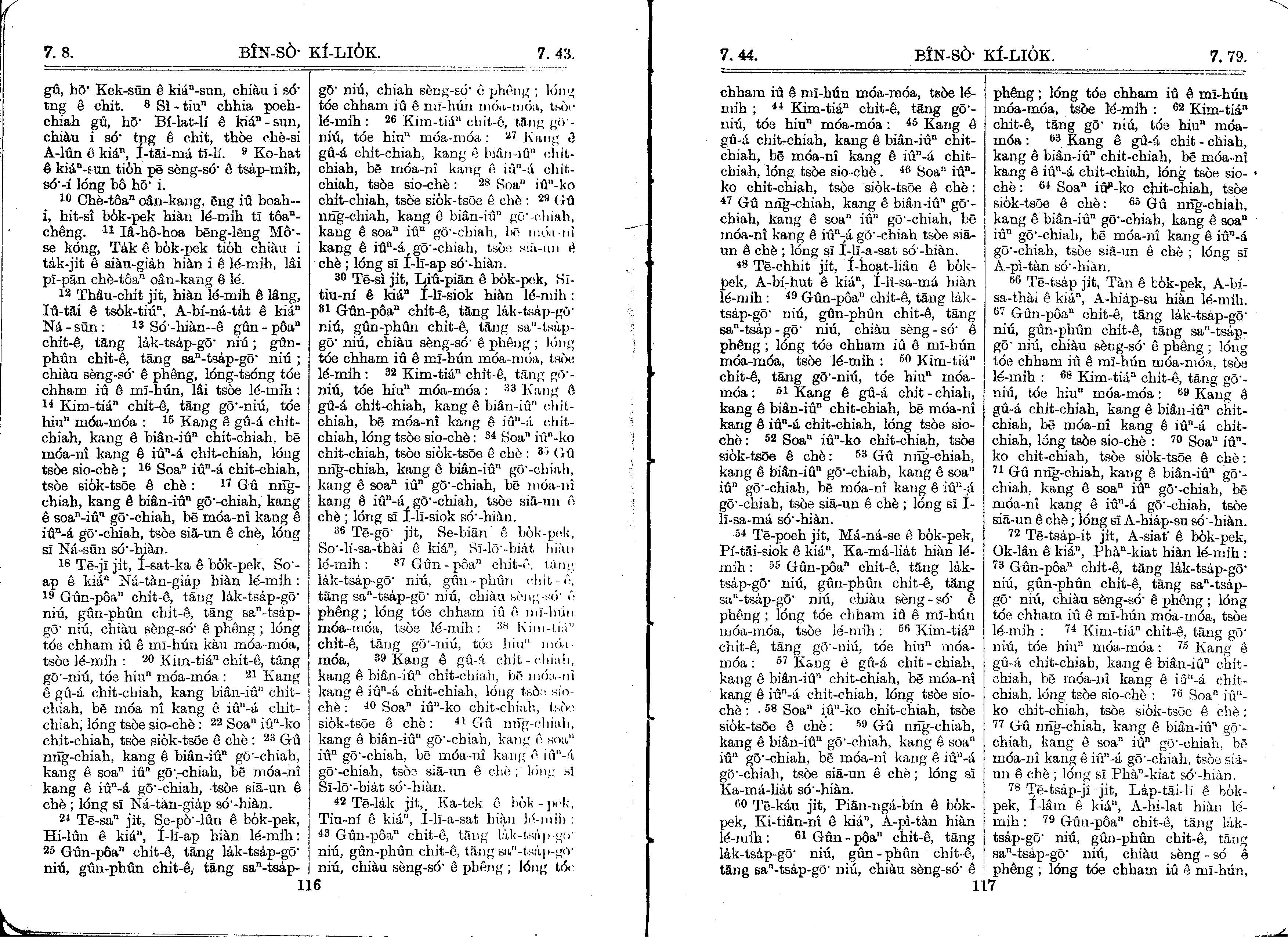 1930年馬雅各舊約全書+巴克禮新約全書 民數記 7 章 8 節到 7 章 79 節