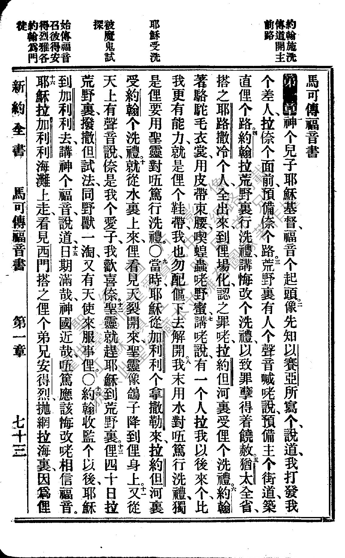1922年新約全書 馬可福音 1 章 1 節到 1 章 16 節